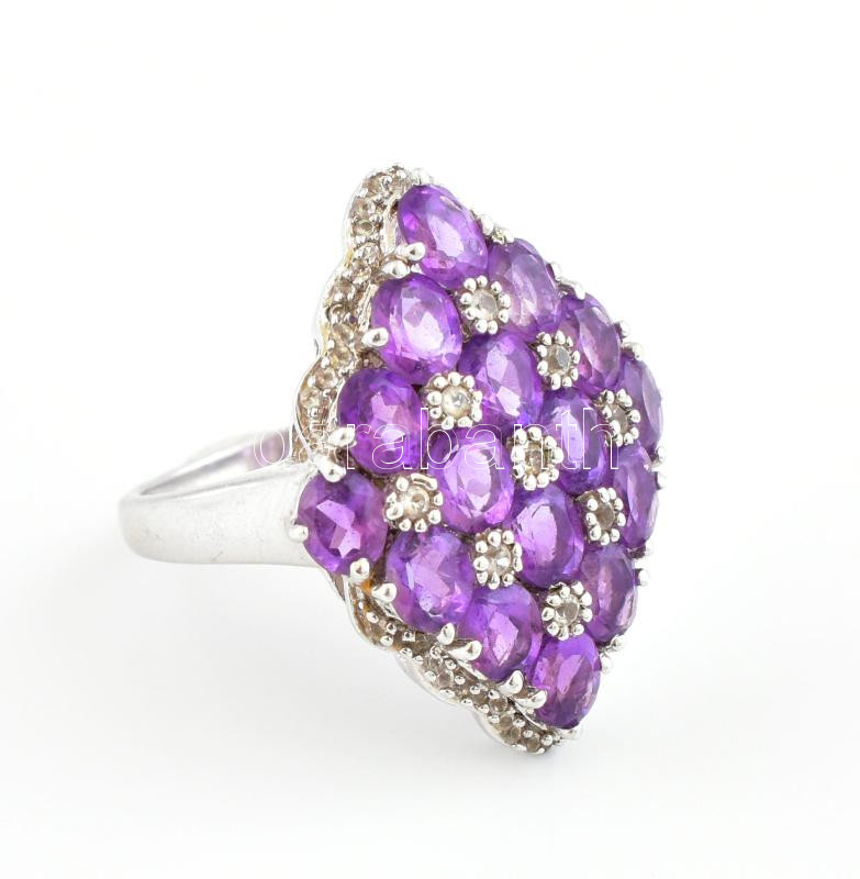 Beschreibung: Ezüst(Ag) gyűrű lila kövekkel gazdagon kirakva, jelzett, méret: 56, bruttó: 8,8 g