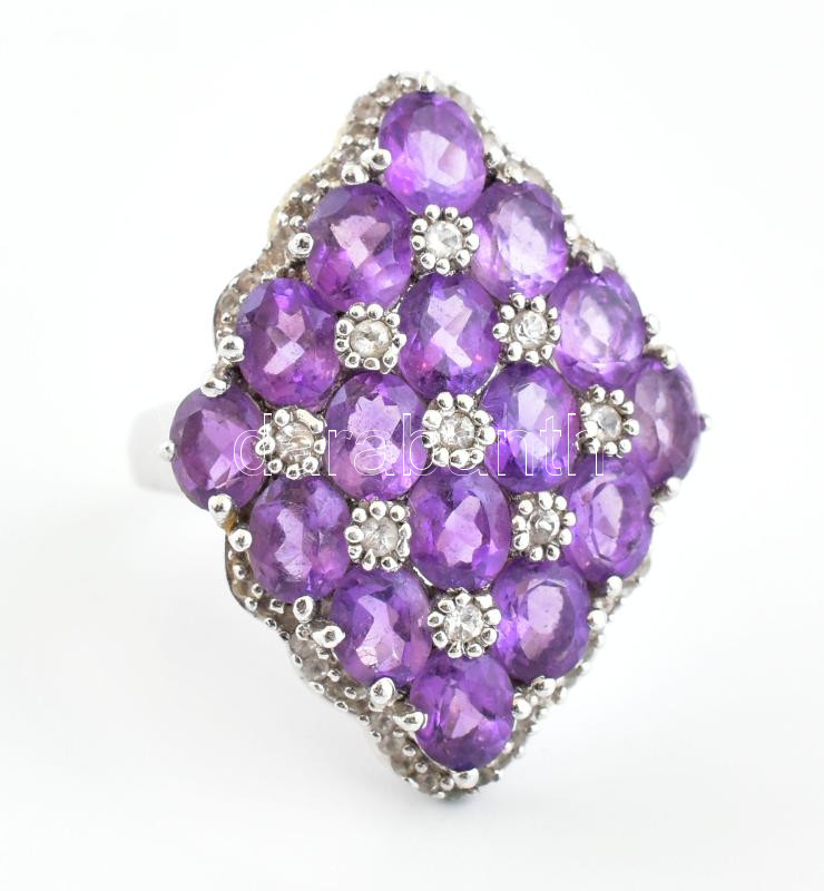 Ezüst(Ag) gyűrű lila kövekkel gazdagon kirakva, jelzett, méret: 56, br... https://www.darabanth.com/de/438-Fernauktion/438.0/Juwellen-und-Kunstobjekte-aus-Edelmetall/Juwellen-und-Kunstobjekte-aus-Edelmetall~1000028/EzustAg-gyuru-lila-kovekkel-gazdagon-kirakva-jelzett-meret-56-brutto-8-8-g~II2861536
