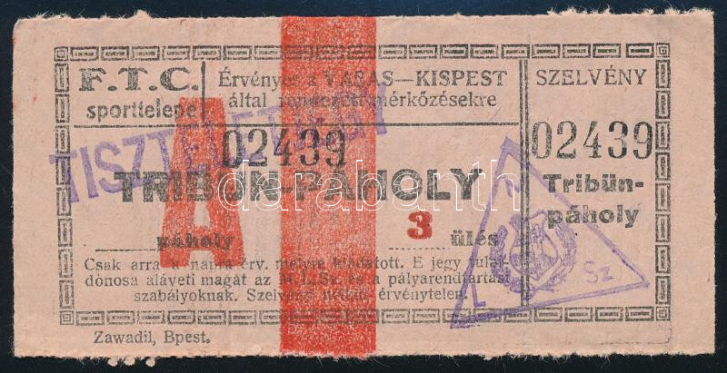 cca 1948 FTC Sporttelep tribün-páholy tiszteletjegy a Vasas-Kispest ál... https://www.darabanth.com/de/438-Fernauktion/438.0/Kunst-Dokumente-andere-Sammelgebiete/Dokument~500020/cca-1948-FTC-Sporttelep-tribun-paholy-tiszteletjegy-a-Vasas-Kispest-altal-rendezett-merkozesek~II2867350