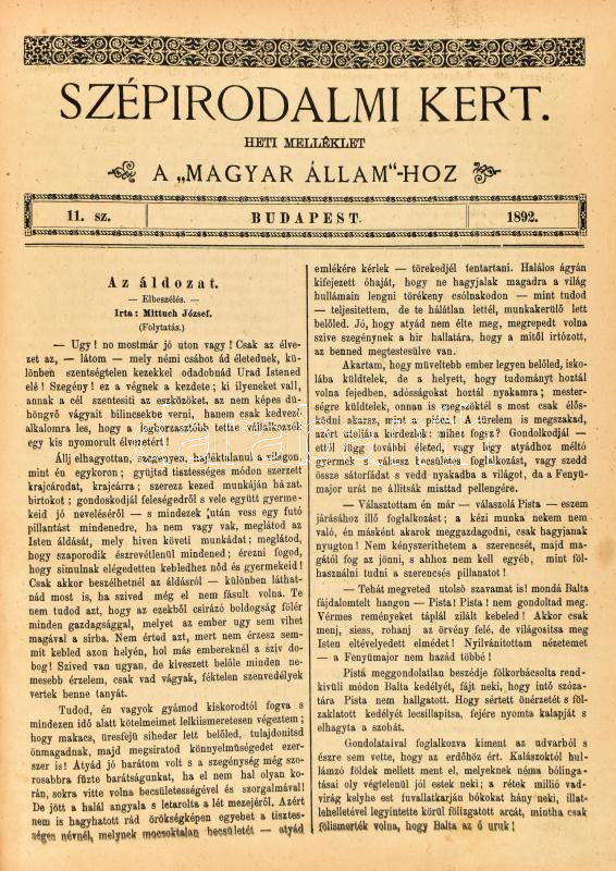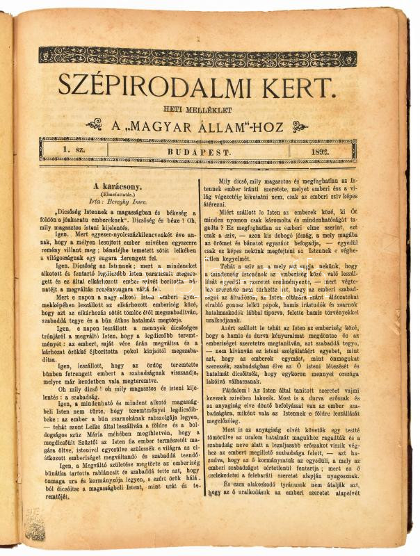 1892 Szépirodalmi kert folyóirat (Melléklet a Magyar Államhoz), teljes... https://www.darabanth.com/de/438-Fernauktion/438.0/Kunst-Dokumente-andere-Sammelgebiete/Drucksachen~1000005/1892-Szepirodalmi-kert-folyoirat-Melleklet-a-Magyar-Allamhoz-teljes-evfolyam-korabeli-felvC3~II2864425