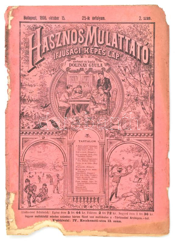 1896 Hasznos Mulattató, ifjúsági képes lap, 25. évf. 2. sz. Szerk. és ... https://www.darabanth.com/de/438-Fernauktion/438.0/Kunst-Dokumente-andere-Sammelgebiete/Drucksachen~1000005/1896-Hasznos-Mulattato-ifjusagi-kepes-lap-25-evf-2-sz-Szerk-es-kiadja-Dolinay-Gyula-E~II2858648