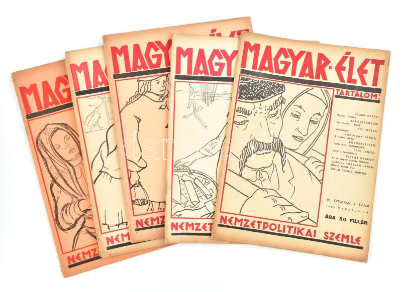1939-1943 Magyar Élet nemzetpolitikai folyóirat 5 db száma https://www.darabanth.com/de/438-Fernauktion/438.0/Kunst-Dokumente-andere-Sammelgebiete/Drucksachen~1000005/1939-1943-Magyar-Elet-nemzetpolitikai-folyoirat-5-db-szama~II2859795