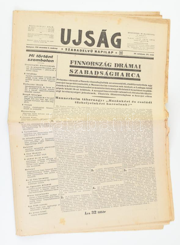 1939 Bp., Az Újság XV. évfolyamának 275. száma, címlapon Finnország dr... https://www.darabanth.com/de/438-Fernauktion/438.0/Kunst-Dokumente-andere-Sammelgebiete/Drucksachen~1000005/1939-Bp-Az-Ujsag-XV-evfolyamanak-275-szama-cimlapon-Finnorszag-dramai-szabadsagharcav~II2869564