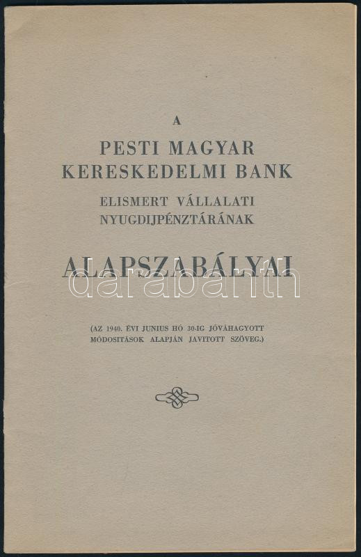 1940 A Pesti magyar kereskedelmi Bank elsimert vállalti nyugdíjpénztár... https://www.darabanth.com/de/438-Fernauktion/438.0/Kunst-Dokumente-andere-Sammelgebiete/Drucksachen~1000005/1940-A-Pesti-magyar-kereskedelmi-Bank-elsimert-vallalti-nyugdijpenztaranak-alapszabalyai-32-p~II2867715