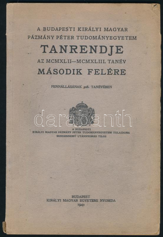 1942 Pázmény Péter tudományegyetem tanrendje https://www.darabanth.com/de/438-Fernauktion/438.0/Kunst-Dokumente-andere-Sammelgebiete/Drucksachen~1000005/1942-Pazmeny-Peter-tudomanyegyetem-tanrendje~II2867710