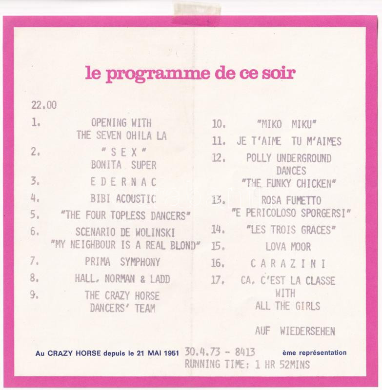 Beschreibung: 1951 A párizsi Crazy Horse Saloon prospektusa