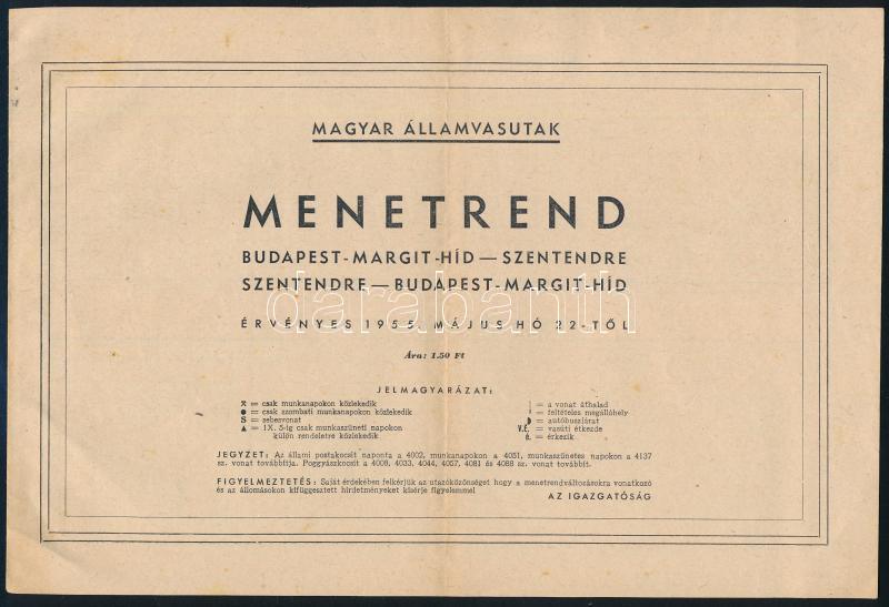 1955 A MÁV Margit hídtól járó HÉV menetrendje https://www.darabanth.com/de/438-Fernauktion/438.0/Kunst-Dokumente-andere-Sammelgebiete/Drucksachen~1000005/1955-A-MAV-Margit-hidtol-jaro-HEV-menetrendje~II2865904