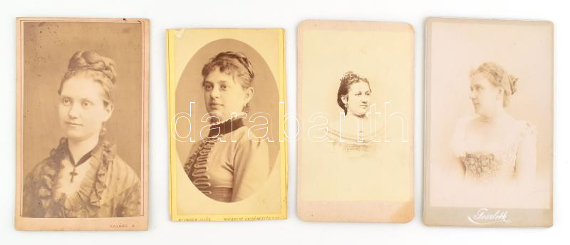 cca 1875-1900 Női portrék, 4 db kerményhátú fotó, 10,5×6,5 cm https://www.darabanth.com/de/438-Fernauktion/438.0/Kunst-Dokumente-andere-Sammelgebiete/Foto~500023/cca-1875-1900-Noi-portrek-4-db-kermenyhatu-foto-10-5C3976-5-cm~II2870900