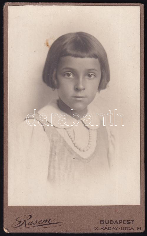 cca 1910 Kislány portréja, keményhátú fotó Rasem Viktor budapesti műte... https://www.darabanth.com/de/438-Fernauktion/438.0/Kunst-Dokumente-andere-Sammelgebiete/Foto~500023/cca-1910-Kislany-portreja-kemenyhatu-foto-Rasem-Viktor-budapesti-mutermebol-10-5C3976-5-cm~II2863012