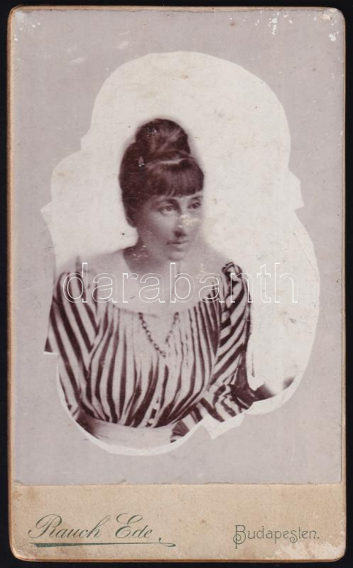 Beschreibung: cca 1910 Női portré, hátoldalon feliratozott "Gróf Batthyány Ilona ajándéka", keményhátú fotó Rauch Ede budapesti műterméből, 10,5×6,5 cm