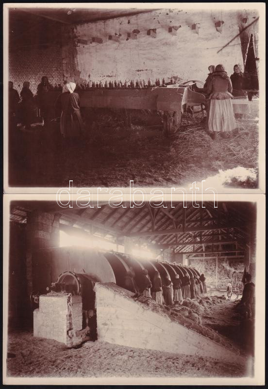 Beschreibung: cca 1910 Sándorháza (?andra, németül Alexanderhausen vagy Schandern, Erdély. kenderfonó 2 db fotó 17x13 cm