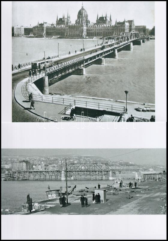 Beschreibung: cca 1946 Budapest, Kossuth híd, Fekete György (1904-1990) budapesti fényképész hagyatékából 2 db modern nagyítás, 15x21 cm