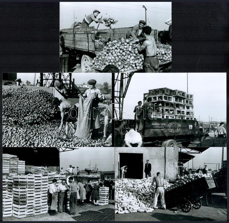 cca 1953 Budapest nagybani piac, vagy nagyvásárcsarnok, Kotnyek Antal (1921-1990) budapesti fotóriporter hagyatékából 9 db modern nagyítás, 15x21 cm és 10x15 cm