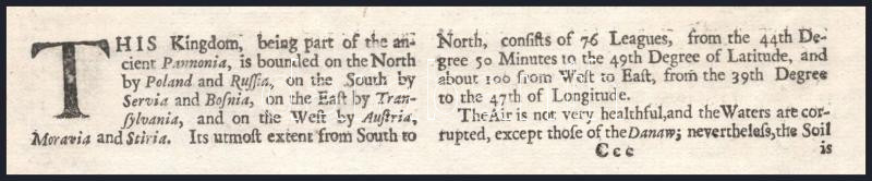 cca 1660 Hungary, Hungaria. Magyarország színezett rézmetszetű térképe. Alatta és hátoldalán a Magyar Királyság angol nyelvű leírásával. London, é.n. 187x182 mm, lapméret 197x308 mm
