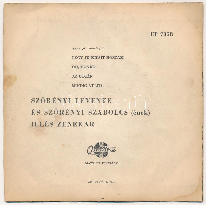 Illés Együttes - Légy Jó Kicsit Hozzám. Vinyl, 7", 45 RPM, EP, Mo... https://www.darabanth.com/de/438-Fernauktion/438.0/Kunst-Dokumente-andere-Sammelgebiete/Musik-Schalplatten-und-CD-s-DVD-s~1000007/Illes-Egyuttes-Legy-Jo-Kicsit-Hozzam-Vinyl-7-45-RPM-EP-Mono-Qualiton-Magyarorszag-1~II2870356