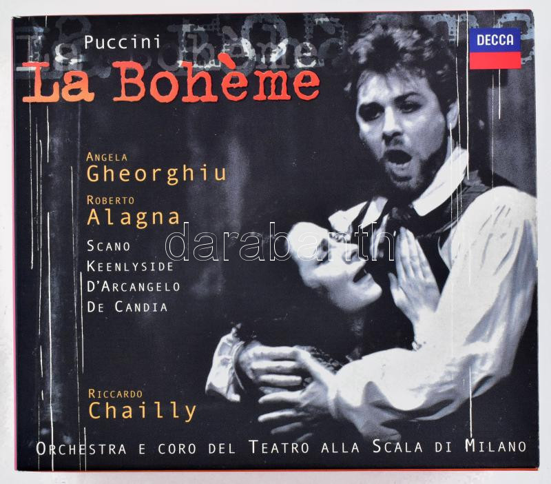 Puccini, Angela Gheorghiu, Roberto Alagna, Scano, Keenlyside, D'Arcangelo, De Candia, Riccardo Chailly, Orchestra E Coro Del Teatro Alla Scala Di Milano - La Boh?me. 2xCD, Decca - 466 070-2, Germany, 1999. Kis szövegkönyvvel a díszdobozban.