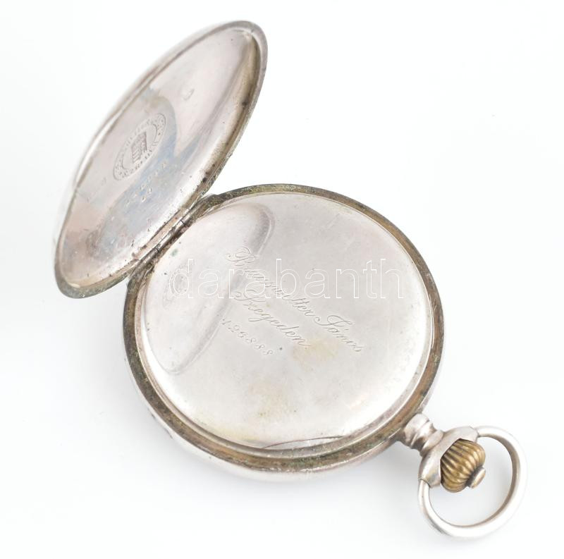 Beschreibung: Braunswetter János Szeged ezüst (Ag) zsebóra, jelzett ezüst tokkal, hibátlan számlappal, nem működik d 50 mm