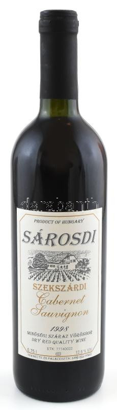 1998 Sárosdi Szekszárdi Cabernet Sauvignon, bontatlan palack száraz vö... https://www.darabanth.com/de/438-Fernauktion/438.0/Kunst-Dokumente-andere-Sammelgebiete/Vintage-Weine-Getranke~500017/1998-Sarosdi-Szekszardi-Cabernet-Sauvignon-bontatlan-palack-szaraz-vorosbor-12-5-pinceben-~II2858242