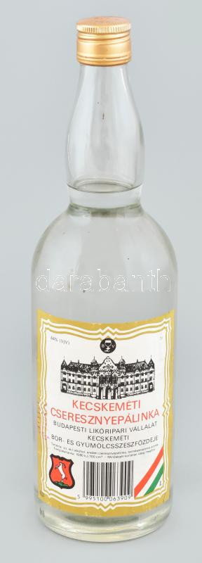 Beschreibung: Kecskeméti Cseresznyepálinka, Budapesti Likőripari Vállalat Kecskeméti Bor- és Gyümölcsszeszfőzdéje, bontatlan palack, 44% alk., 1 l