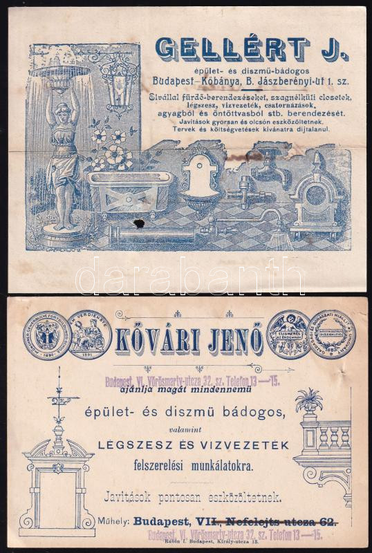 1905 2 db díszes reklám lap számla. Kővári J. és Gellért bádogosok 15x... https://www.darabanth.com/de/438-Fernauktion/438.0/Kunst-Dokumente-andere-Sammelgebiete/Werbungen~500024/1905-2-db-diszes-reklam-lap-szamla-Kovari-J-es-Gellert-badogosok-15x10-cm~II2864835