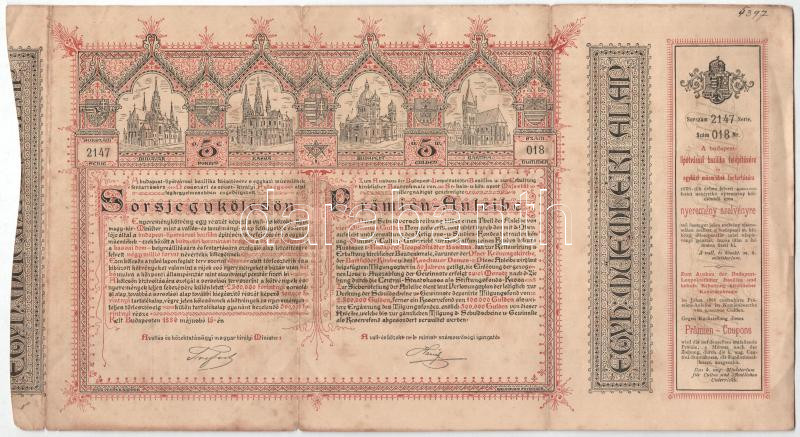 Beschreibung: Budapest 1886. "Egyházi Műemlék Alap" sorsjegykölcsön 5Ft-ról (2x) a lipótvárosi bazilika felépítésére és egyházi műemlékek fenntartására T:F