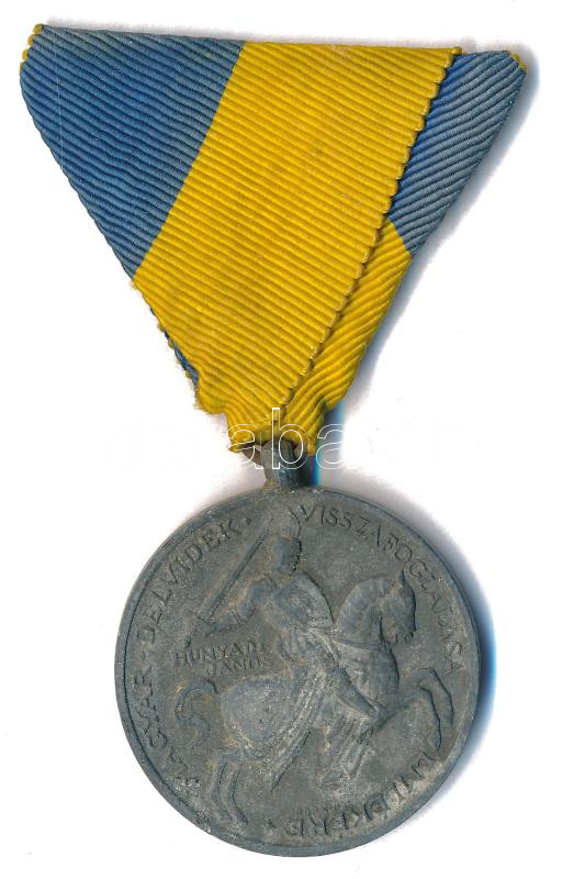 Hungary 1941. "Commemorative Medal for the Return of Southern Hungary" Zn medal with ribbon. Sign: BERÁN L. C:XF corrosion