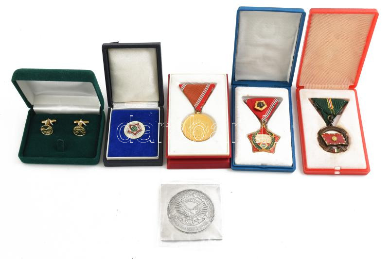 5db-os vegyes, nagyrészt katonai kitüntetés és emlékérem tétel, közte "A haza szolgálatáért bronz fokozat, Kiváló Munkáért, 10 éves Rendőri Szolgálatért, A Hazáért - Katonai Felderítőhivatal, Honvédelmi érdemérem" + egy pár katonai mandzsettagomb. A legtöbb saját tokban T:AU,XF