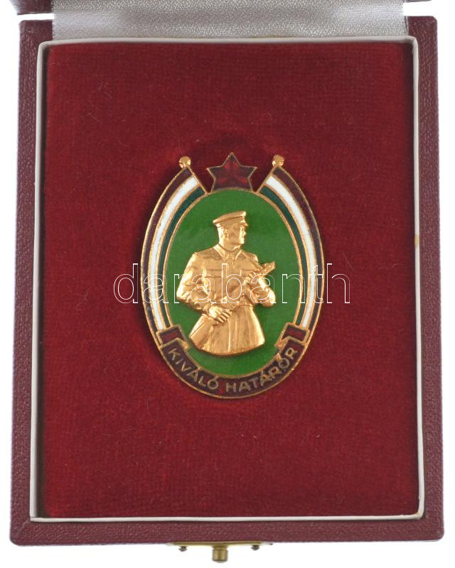~1970. "Kiváló Határőr" aranyozott, zománcozott jelvény ered... https://www.darabanth.com/de/438-Fernauktion/438.0/Numismatik/Militaria~2000003/7E1970-Kivalo-Hataror-aranyozott-zomancozott-jelveny-eredeti-tokban-csavaros-hatlappal-4~II2858675