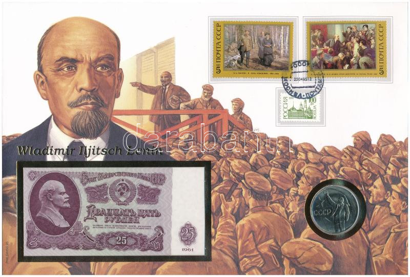 Szovjetunió / Vlagyimir Iljics Lenin 1961. 25R + 1967. 1R Cu-Ni "A forradalom 50. évfordulója" felbélyegzett borítékban, alkalmi bélyegzéssel T:UNC