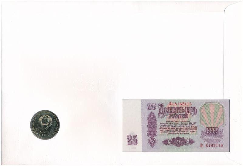 Soviet Union / Vladimir Lenin 1961. 25 Rubles + 1967. 1 Ruble Cu-Ni "50th Anniversary of the October Revolution" in envelope with stamp and cancellation C:UNC