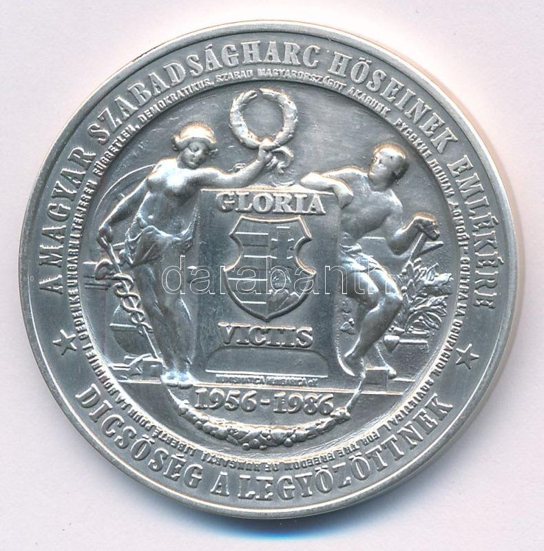 1986. "A magyar szabadságharc hőseinek emlékére - Dicsőség a legyőzöttnek - Gloria victis - Numismatica Hungarica / Az 1956-os magyar népfelkelés, szabadságharc és forradalom történelmi mozzanatai" kétoldalas ezüstözött bronz emlékérem, peremén "1000" sorszámmal (38mm) T:UNC