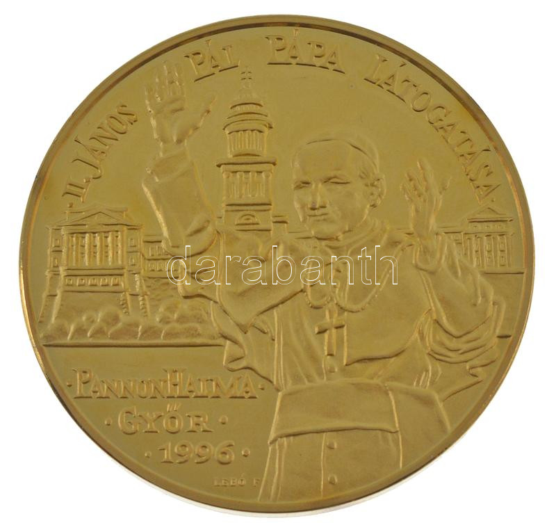 Lebó Ferenc (1960-) 1996. "II. János Pál pápa látogatása - Pannon... https://www.darabanth.com/de/438-Fernauktion/438.0/Numismatik/Ungarische-Gedenkmunzen-Plaketten~1500009/Lebo-Ferenc-1960-1996-II-Janos-Pal-papa-latogatasa-Pannonhalma-Gyor-aranyozott-bron~II2857589