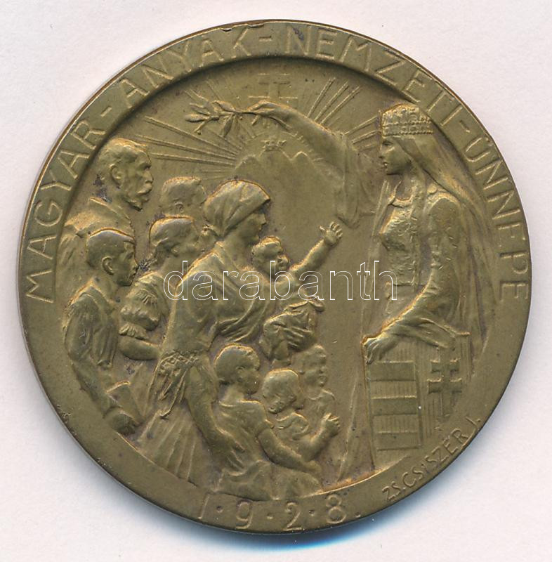 Zsákodi Csiszér János (1883-1953) 1928. "Magyar Anyák Nemzeti Ünnepe" egyoldalas bronz emlékérem (40mm) T:1 hátoldalon patina