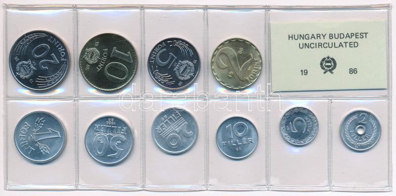 1986. 2f-20Ft (10xklf) érmés forgalmi sor fóliatokban T:UNC Adamo FO19 https://www.darabanth.com/de/438-Fernauktion/438.0/Numismatik/Ungarische-Kursmunzsatze~1500015/1986-2f-20Ft-10xklf-ermes-forgalmi-sor-foliatokban-TUNC-Adamo-FO19~II2855646