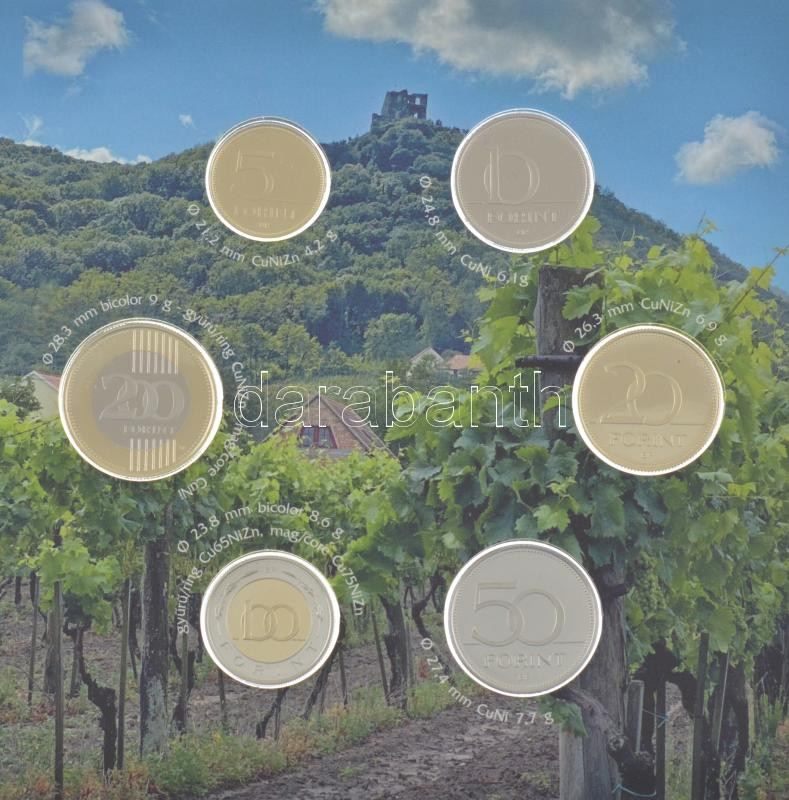 2022. 5Ft-200Ft (6xklf) forgalmi sor szettben + "Somlói borvidék&... https://www.darabanth.com/de/438-Fernauktion/438.0/Numismatik/Ungarische-Kursmunzsatze~1500015/2022-5Ft-200Ft-6xklf-forgalmi-sor-szettben-plus-Somloi-borvidek-Cu-Ni-Zn-proof-emlekerem-TBU-~II2860249