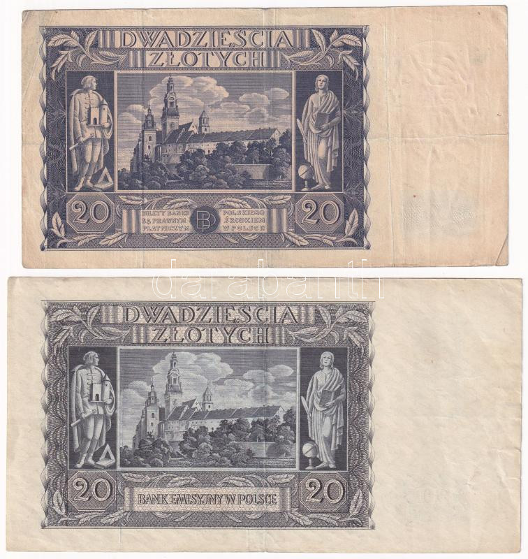 Poland 1936. 20 Zlotych + 1... https://www.darabanth.com/de/438-Fernauktion/438.0/Numismatik/Weltweit-Banknoten~1500013/Lengyelorszag-1936-20Zl-plus-1940-20Zl-TF-Poland-1936-20-Zlotych-plus-1940-20-Zlotych-CF--Krause-~II2861078
