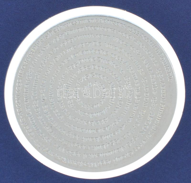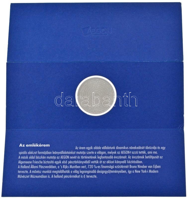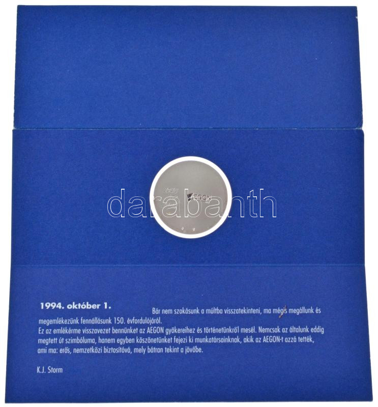 Hollandia 1994. október 1. "AEGON fennállásának 150. évfordulója" Ag emlékérem a Holland Állami Pénzverde kiadásában magyar nyelvű tájékoztatóval (0.720/38mm) T:PP Netherlands 1994. "AEGON 150th anniversary" Ag medallion from the Risjsk Munten with Hungarian information (0.720/38mm) T:PP
