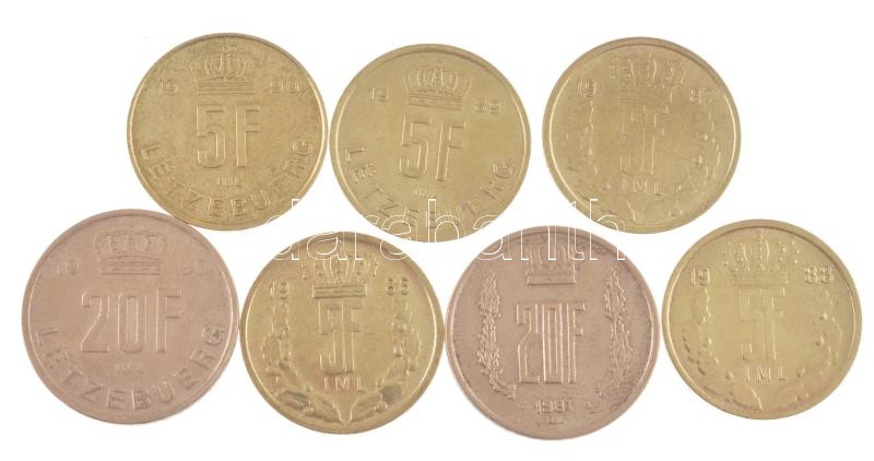 Luxemburg 1986-1990. 5Fr (5xklf) + 1981-1990. 20Fr (2xklf) T:AU-VF Luxembourg 1986-1990. 5 Francs (5xdiff) + 1981-1990. 20 Francs (2xdiff) C:AU-VF