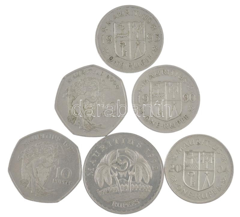 Mauritius 1990-2004. 1 Rupee Cu-Ni (3xdiff) + 1992. 5 Rupees Cu-Ni + 1997-2000. 10 Rupees Cu-Ni (2xdiff) C:AU,XF
