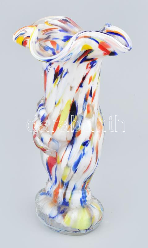 Beschreibung: Muranoi üveg váza. Fújt, anyagában színezett, száján kis csorbával. 23 cm