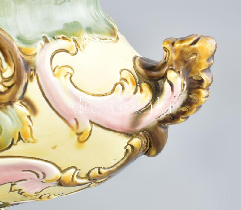 Régi fajansz jardiniere, kézzel festett, jelzett: Julius Dressler, kop... https://www.darabanth.com/de/438-Fernauktion/438.0/Porzellan-Keramik-Glass/Keramiken~500005/Regi-fajansz-jardiniere-kezzel-festett-jelzett-Julius-Dressler-kopasokkal-m-27-cm-d-38-cm~II2858747