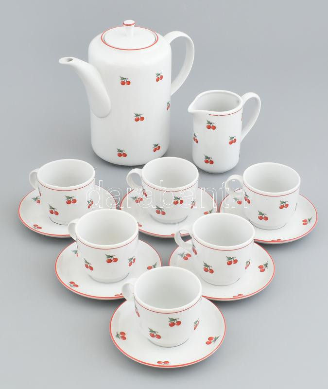Beschreibung: Alföldi porcelán 6 személyes cseresznyemintás mokkás készlet, matricás, jelzett, kis kopásnyomokkal
