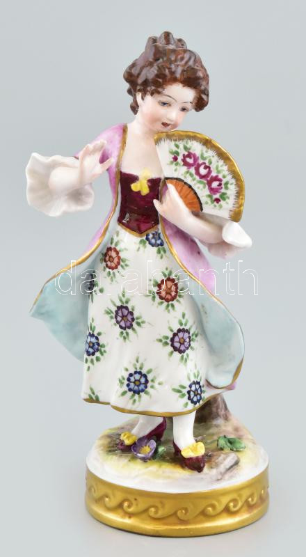 Beschreibung: Sandizell porcelán hölgy legyezővel, kézzel festett, jelzett, apró kopásnyomokkal, restaurált. m: 15 cm