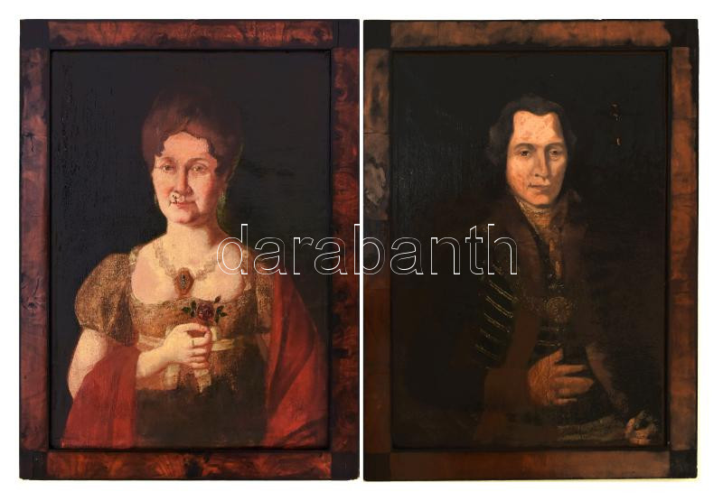Ismeretlen festő: Nemesi pár portréja. 2 db festmény. Olaj, vászon, restaurált, a női portré erősebben sérült, korabeli barna fakeretben, 1830 körül, 73x52cm / A tétel a Gödöllői Királyi Kastélyban tekinthető meg. A megtekintéshez időpontot kell egyeztetni ezen a telefonon a múzeummal,06 30-590-3371. Amennyiben elnyeri a tételt árverésünkön, akkor irodánkban való fizetés után személyesen a kastélyban vehető át. A terméket nem postázzuk.