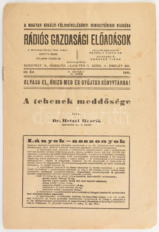 Hetzel Henrik: A tehenek meddősége. Rádiós Gazdasági Előadások XIV. év... https://www.darabanth.com/de/439-Fernauktion/439.0/Bucher/Bucher-Gastronomie-und-Gartnerei~1500016/Hetzel-Henrik-A-tehenek-meddosege-Radios-Gazdasagi-Eloadasok-XIV-evf-A-sor-21-szam-B~II2878243