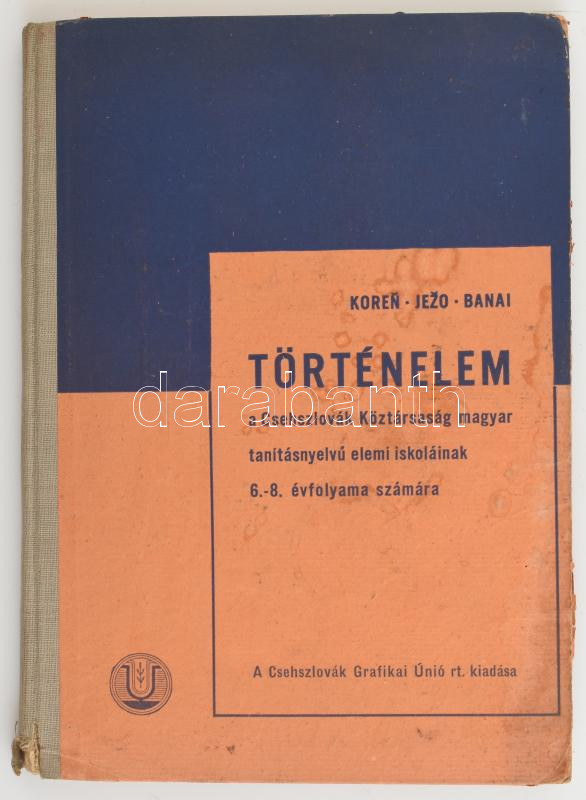 Koren-Jezo-Banai: Történelem a Cshszlovák Köztársaság magyar tanításnyelvű elemi iskoláinak 6.-8. évfolyama számára. Prága, 1937. A Csehszlovák Grafikai Únió rt. Kis sérüléssel.