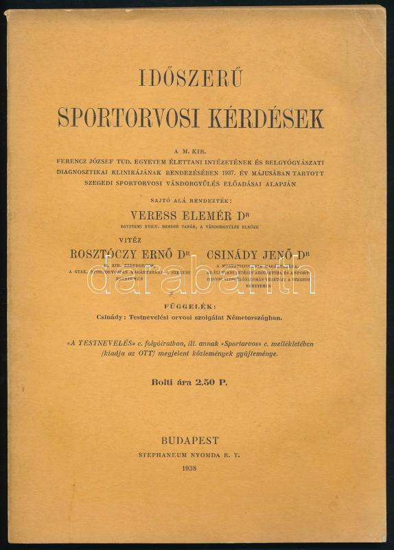 Veress-Rosztóczy-Csinády: Időszerű sportorvosi kérdések Bp., 1938. Stephaneum. 130p. Kiadói papírkötésben