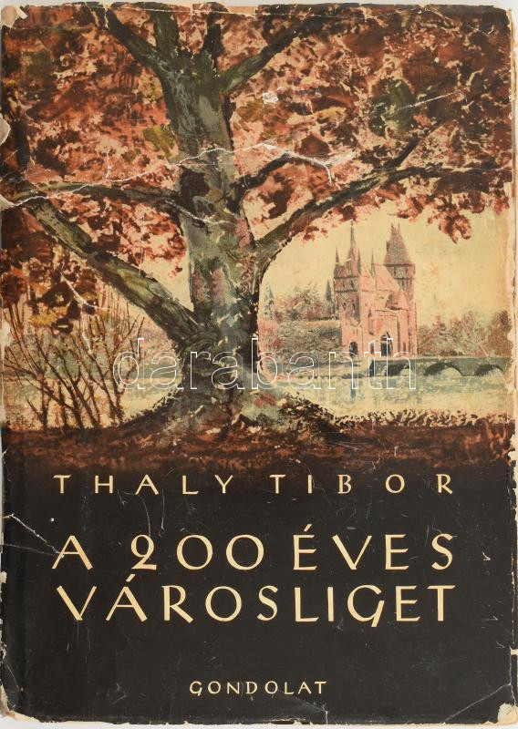 Thaly Tibor: A 200 éves Városliget. Bp. 1958. Gondolat. Fekete-fehér fotókkal gazdagon illusztrált. Kiadói félvászon-kötésben, kiadói sérült, javított papír védőborítóban, de belül jó állapotban.