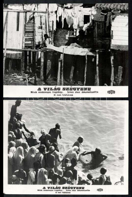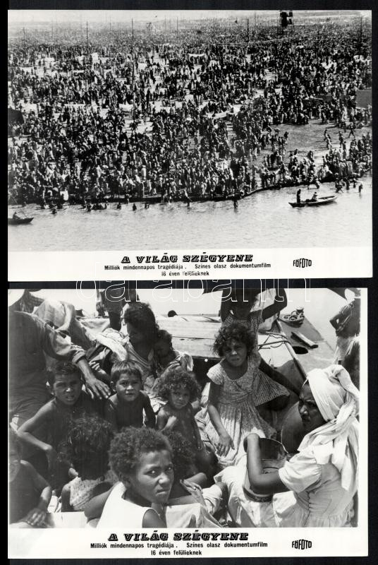cca 1972 ,,A világ szégyene - milliók mindennapos tragédiája" című olasz dokumentumfilm jelenetei és szereplői, 13 db vintage produkciós filmfotó ezüst zselatinos fotópapíron, a használatból eredő (esetleges) kisebb hibákkal, 18x24 cm