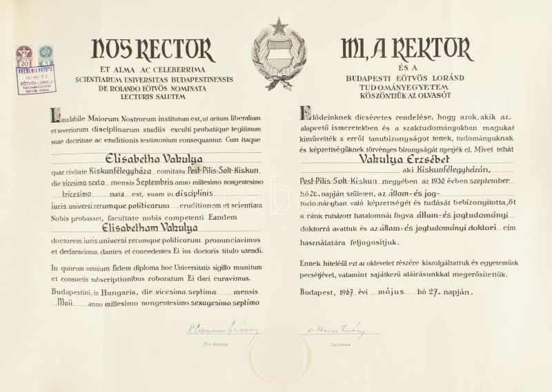 1967 Jogi doktori oklevél tokjában https://www.darabanth.com/de/439-Fernauktion/439.0/Kunst-Dokumente-andere-Sammelgebiete/Dokument~1000020/1967-Jogi-doktori-oklevel-tokjaban~II2881005